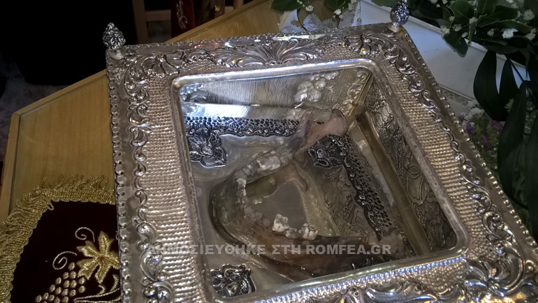 | Η κάτω σιαγών του Αγίου Ιωάννη του Προδρόμου και Βαπτιστού. Ιερά Μονή Αγίας Παρασκευής Δομήρου. |